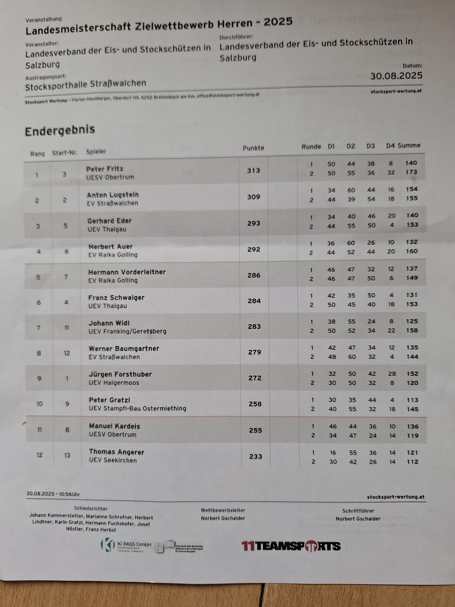 Mit einem souveränem Vorsprung von 7 Punkten auf den 2. Platzierten USC Abersee und 8 Punkten auf EV Kuchl holten wir uns den Salzburger Stier. Guter Start in die Wintersaison 25/26.