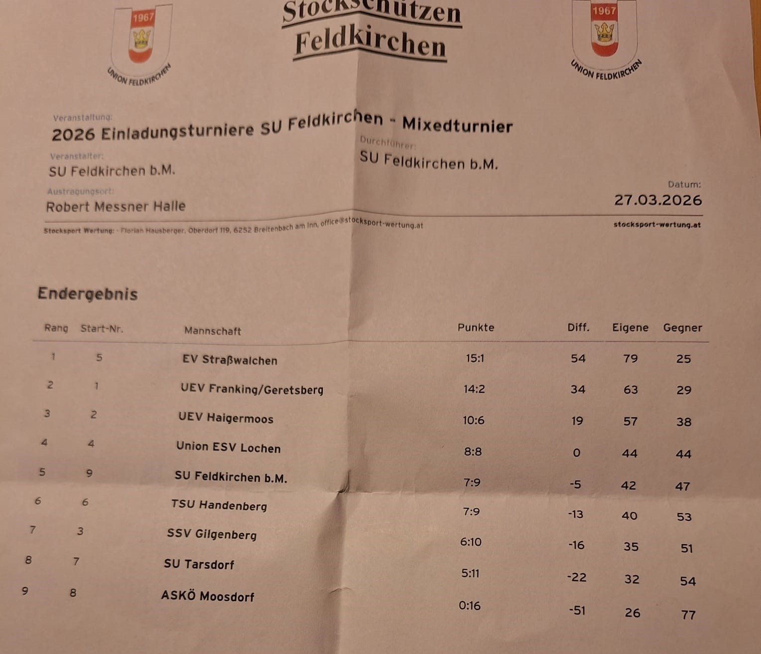 Endergbnis Mixed Feldkirchen